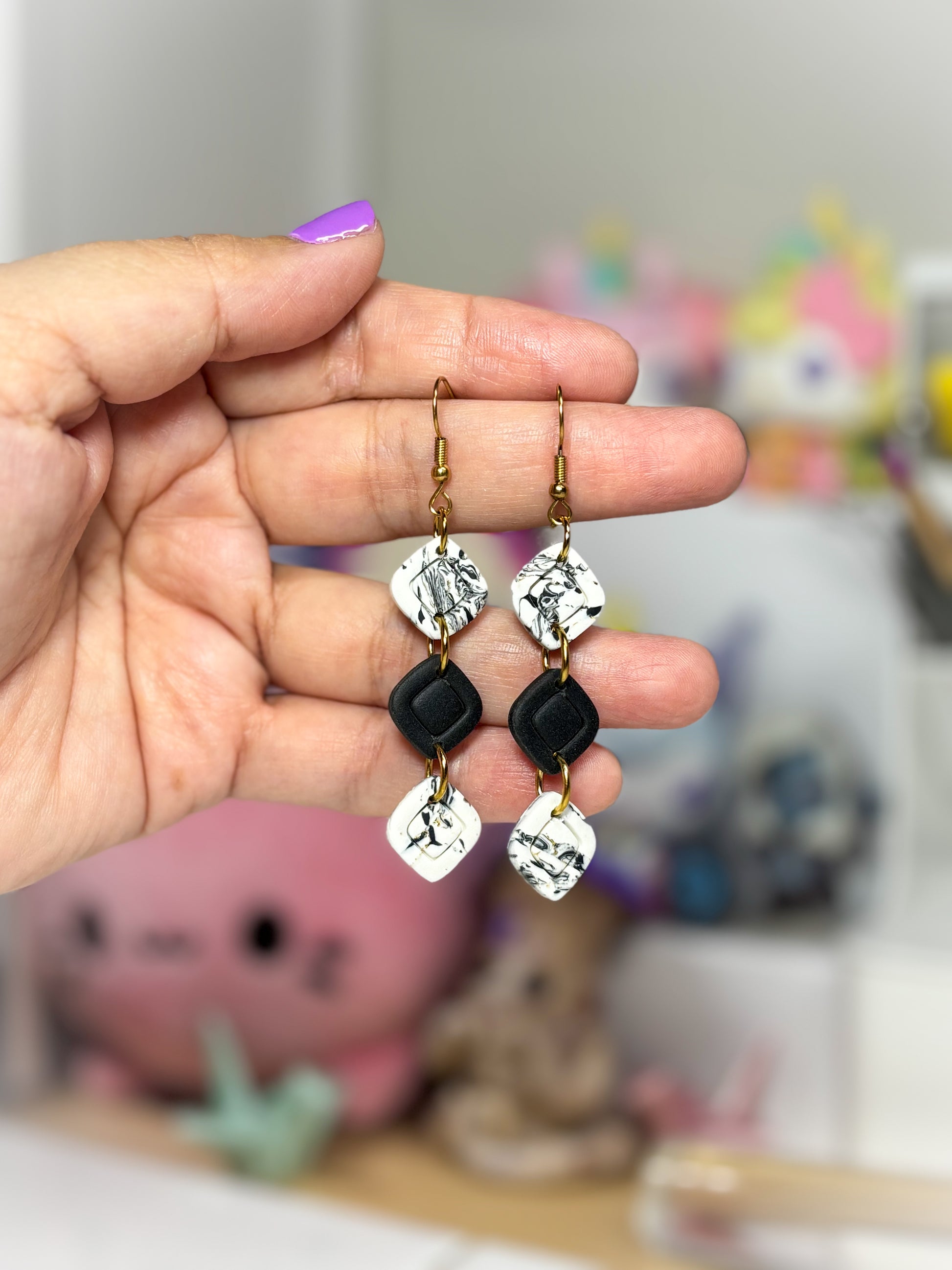 Each pair is carefully handcrafted using high quality polymer clay and finished with stainless steel hooks, perfect for sensitive ears. Lightweight, durable, and unique no two pieces are ever exactly alike.